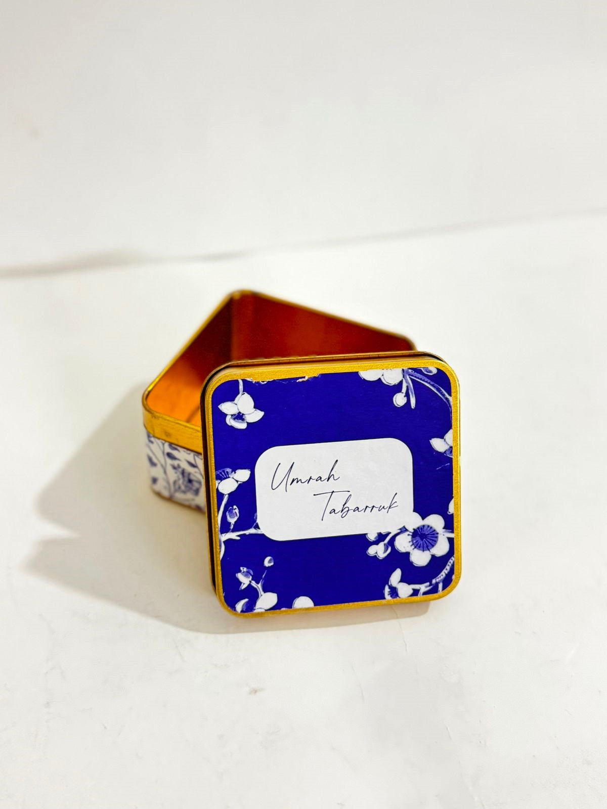 Tin Box Blue Elegant Square - Umrah/Hajj Tabarruk (125g)