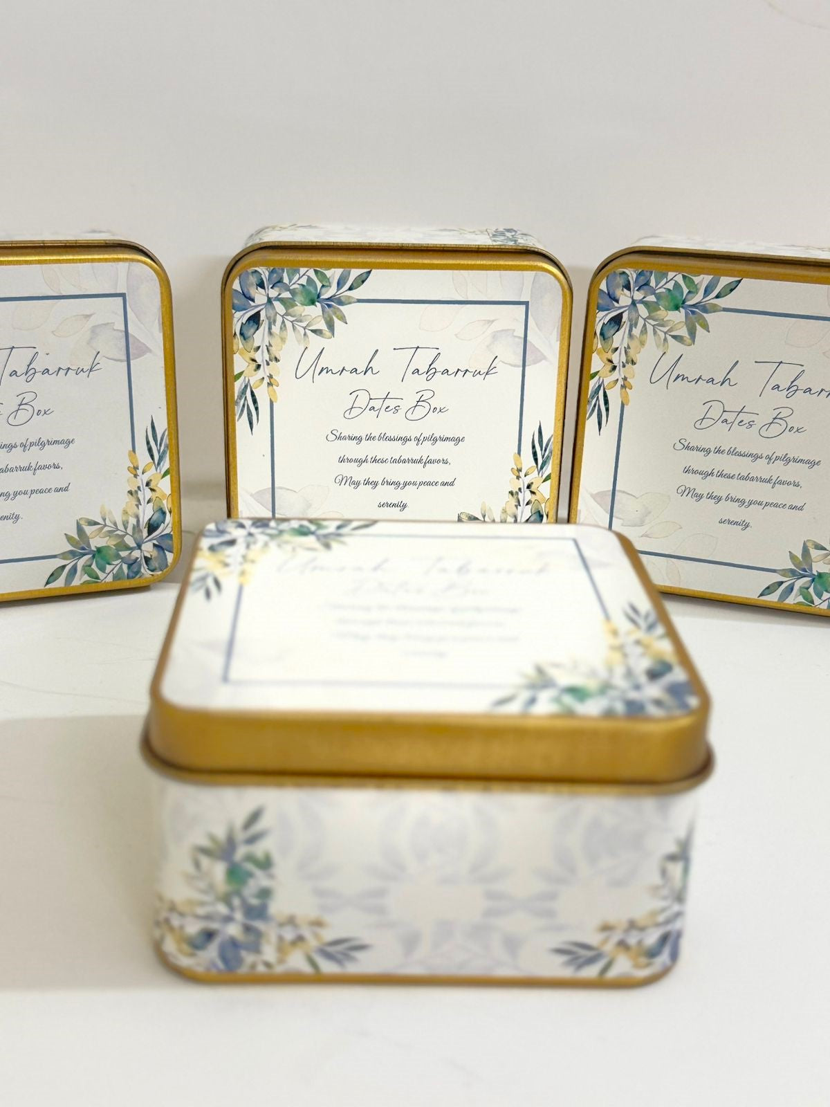 Tin Box Green Floral Square - Umrah/Hajj Tabarruk (125g)